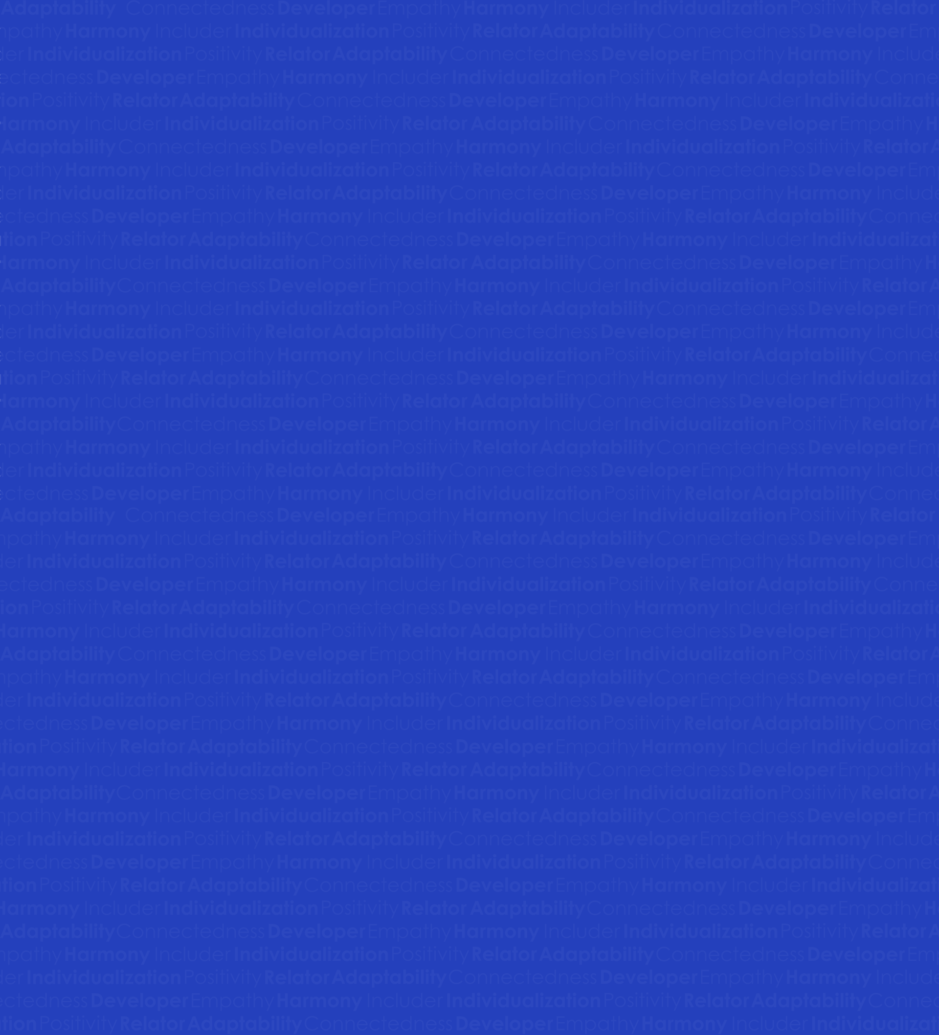 I believe our natural strengths are the foundation for meaningful achievement and fulfillment. That’s why I became a CliftonStrengths® coach: to help you discover, develop, and leverage your strengths so you can overcome challenges and thrive.